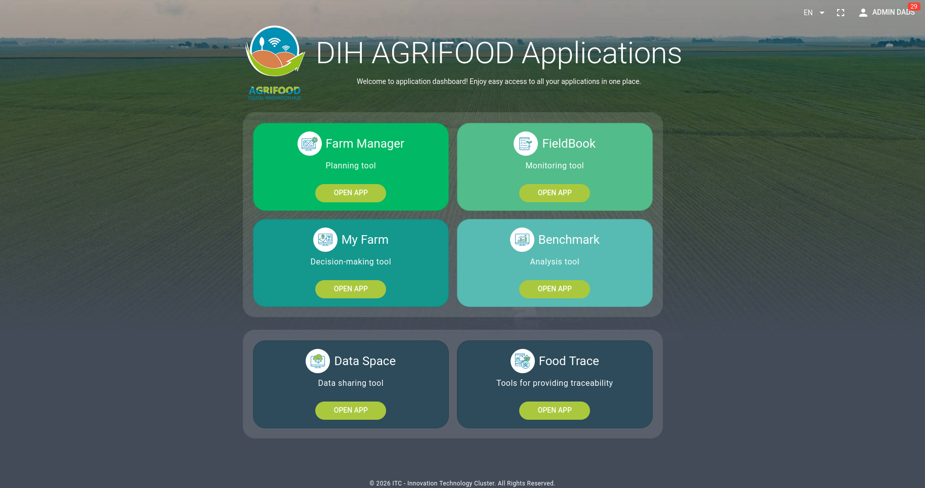 Enjoy easy access to all DIH AGRIFOOD Aplications in one place. For farmers, for agricultural advisors, for educational organisations, and more...